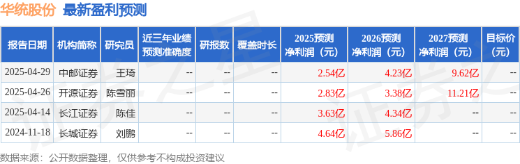 最新盈利预测明细如下: